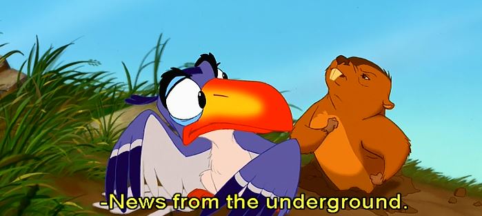 Previous Image Next Image zazu and gopher I’m surprised he wasn’t part of an underground resistance when Scar took the kingdom!
